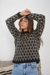 This round-neck sweater stands out for its two-tone Danish-style pattern. Made from 100% mohair wool, it offers exceptional softness and warmth. Each piece is handwoven by talented Argentine women, giving it a unique and artisanal touch.